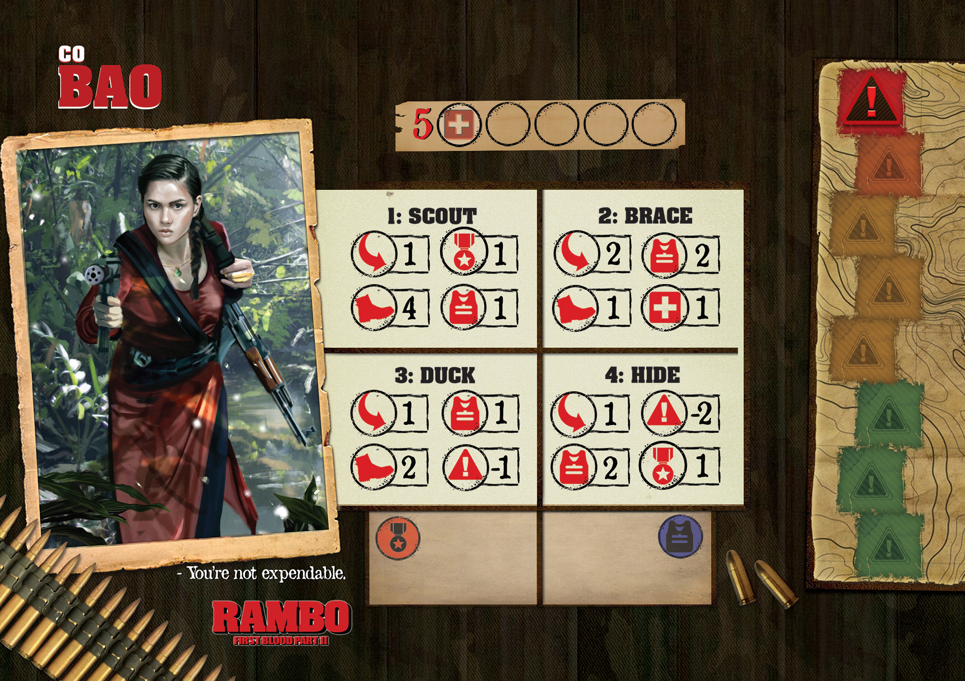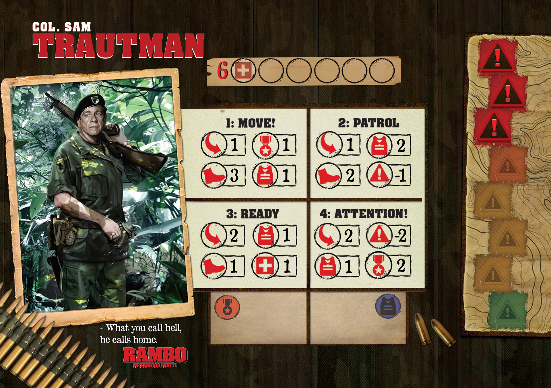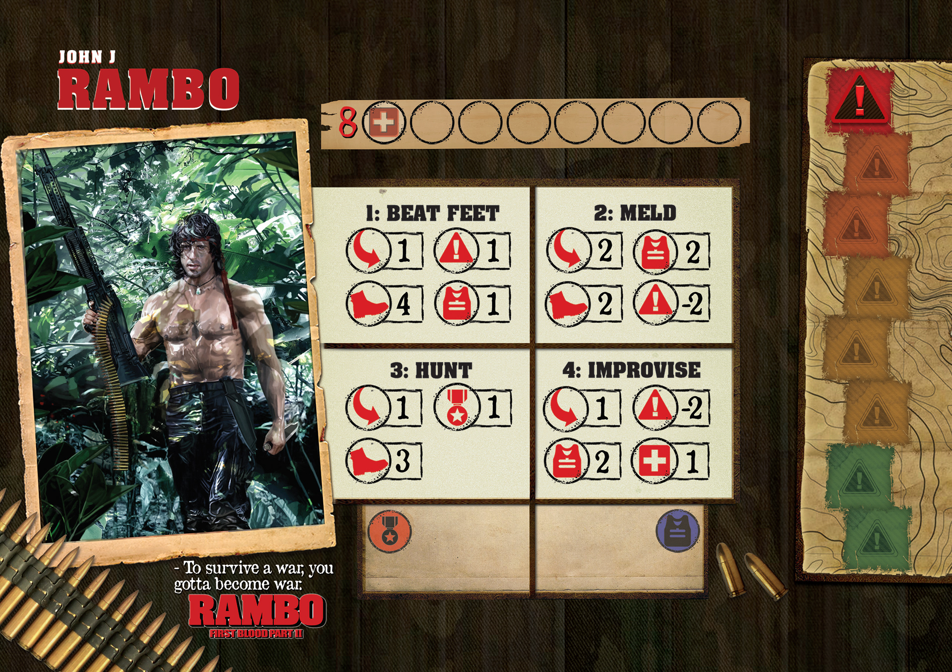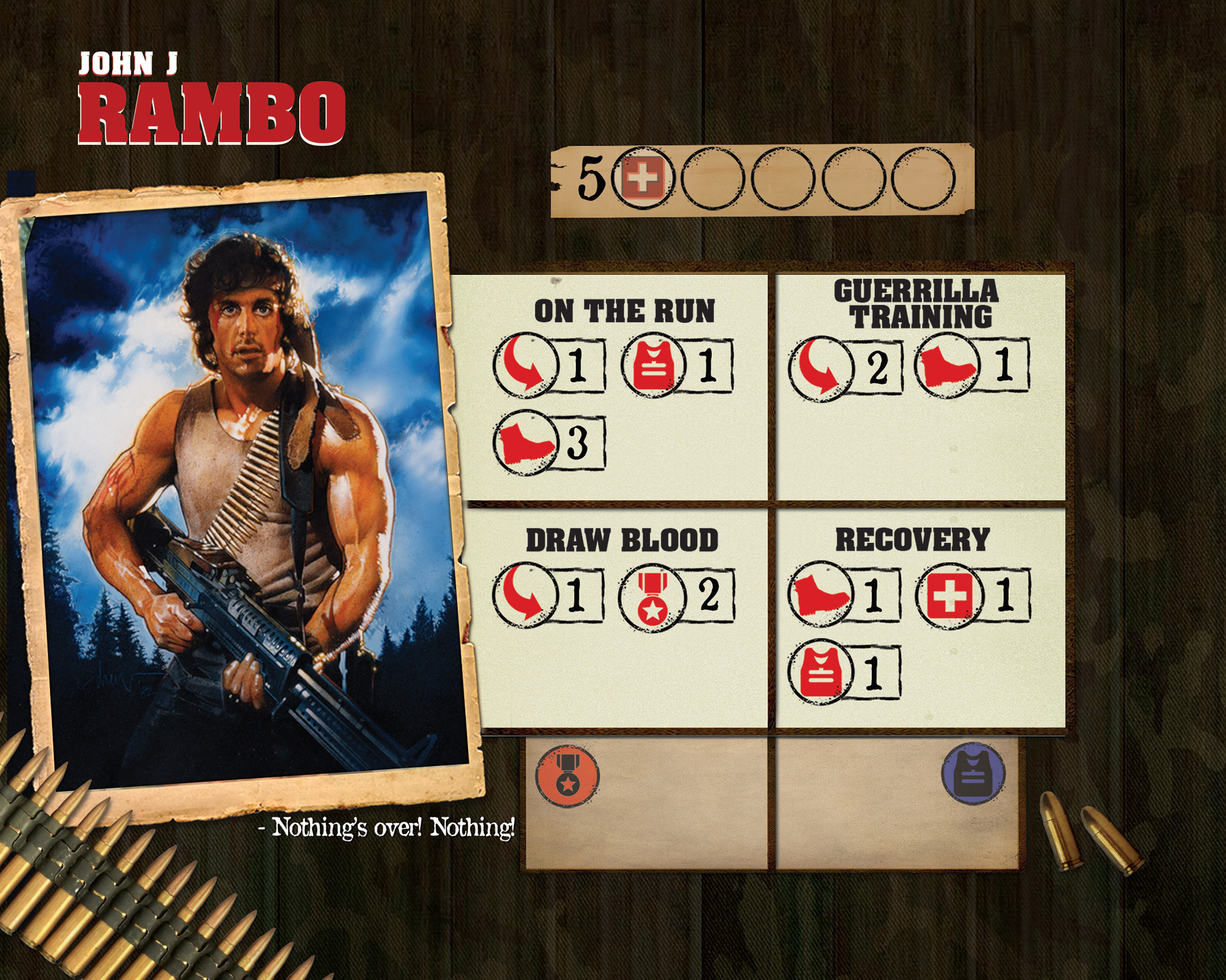 *I have not illustrated these images- they were provided to me to be used on Rambo The Board Game deliverables.